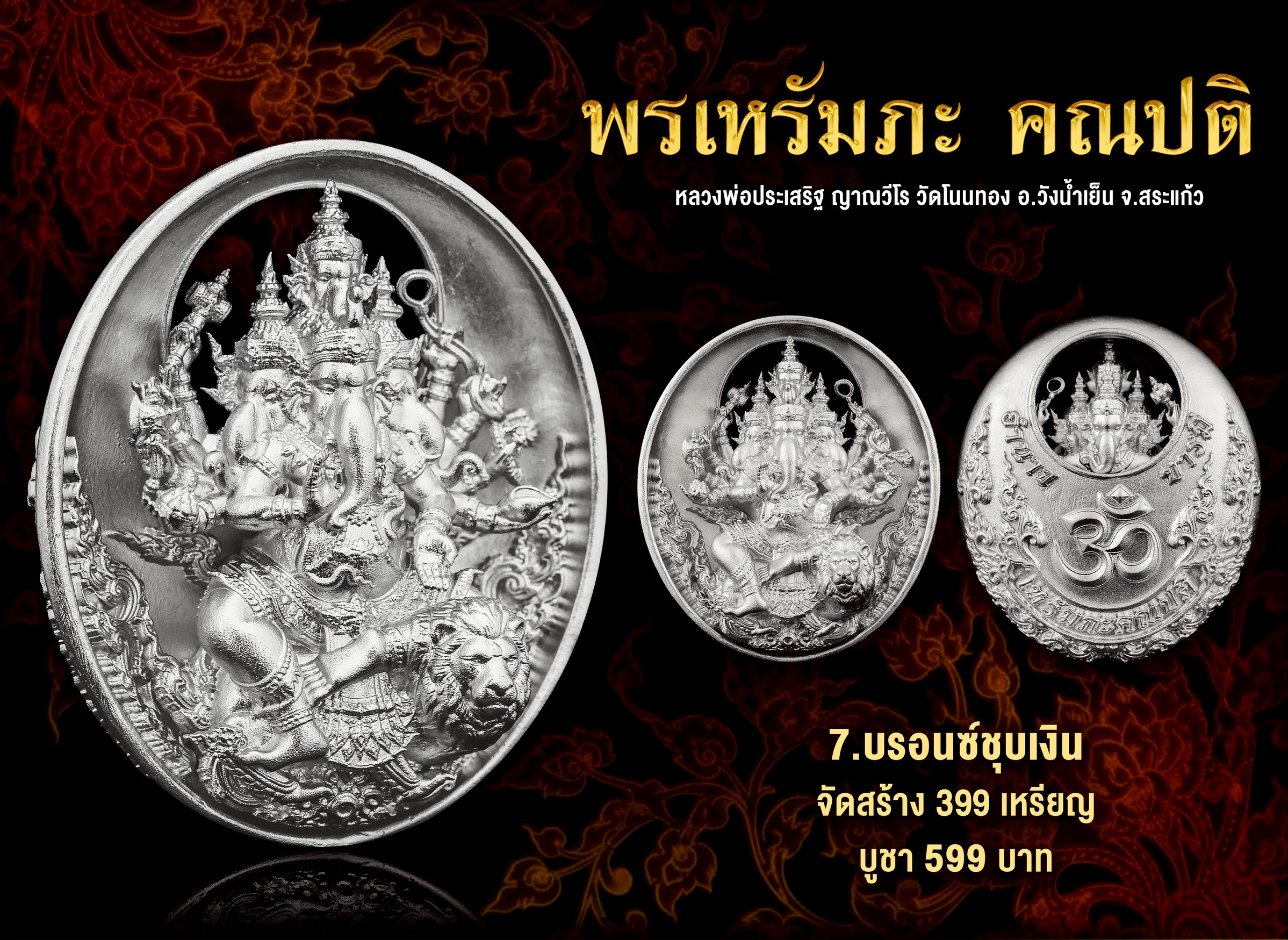 หลวงพ่อประเสริฐ วัดโนนทอง พรเหรัมภะ คณปติ เหรียญขนาดสูง 3.5 ซม.