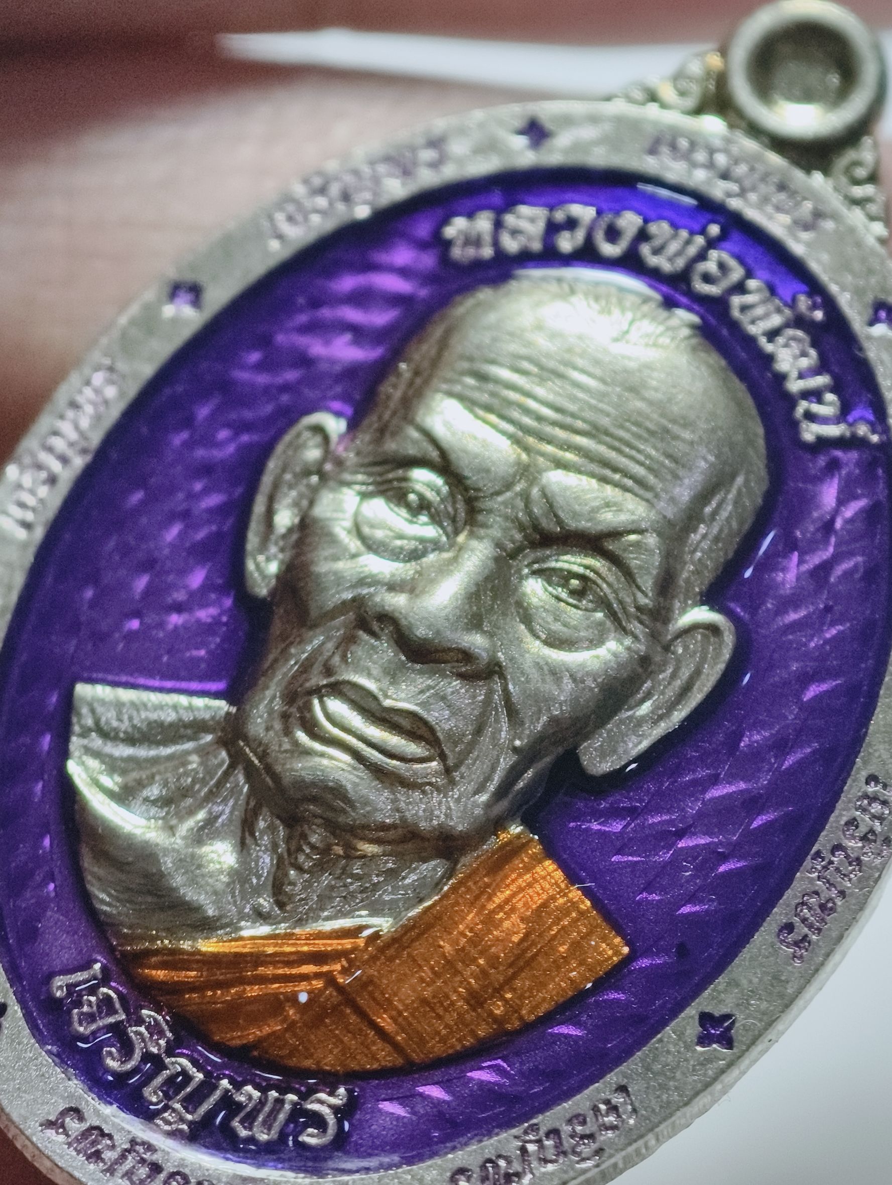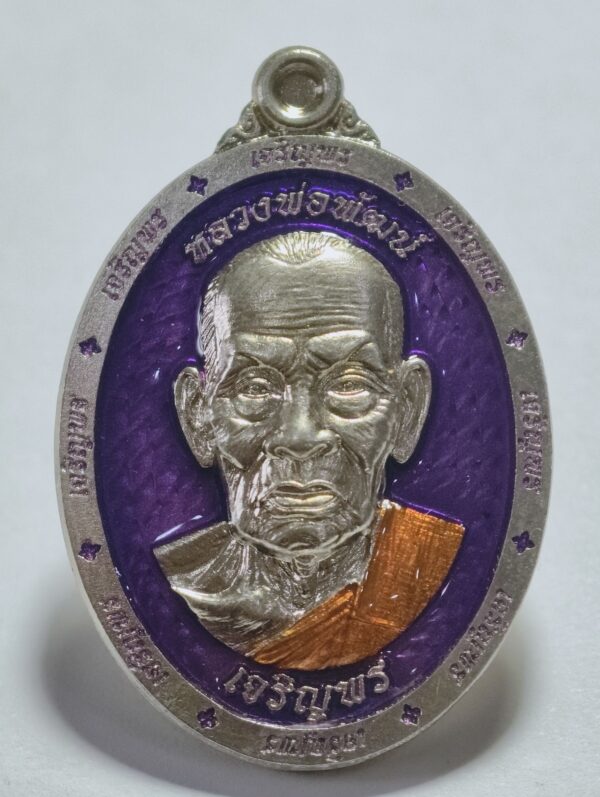 หลวงพ่อพัฒน์ วัดห้วยด้วน เหรียญเจริญพรล่าง 102ปี อัลปาก้า ขัดเงา ลงยา AC2431