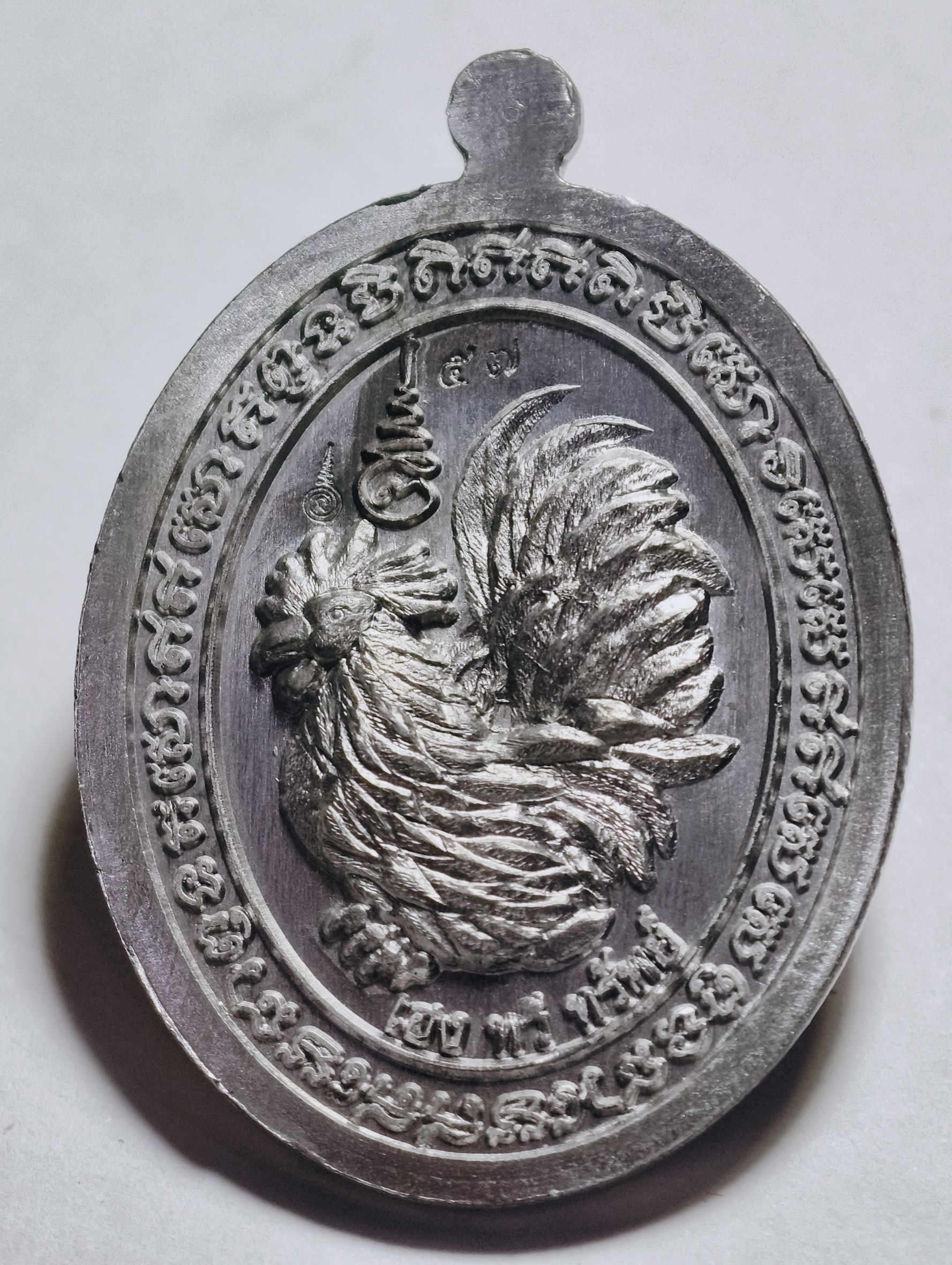 หลวงพ่อพัฒน์ วัดห้วยด้วน เหรียญไก่ใหญ่ เฮงทวีทรัพย์ ธงชาติ AC2394