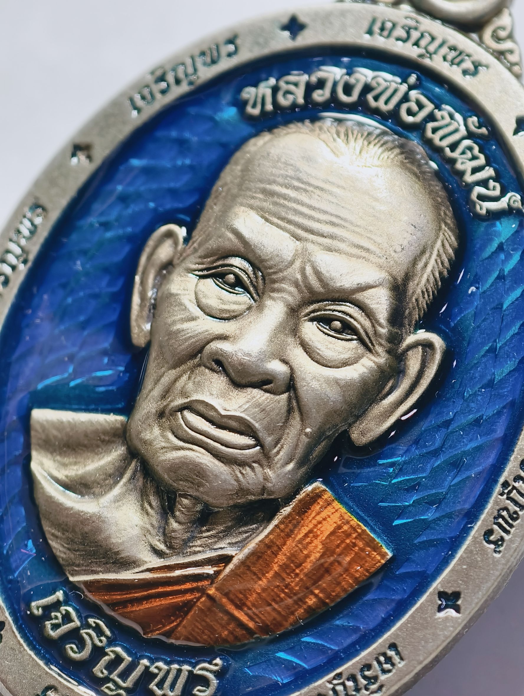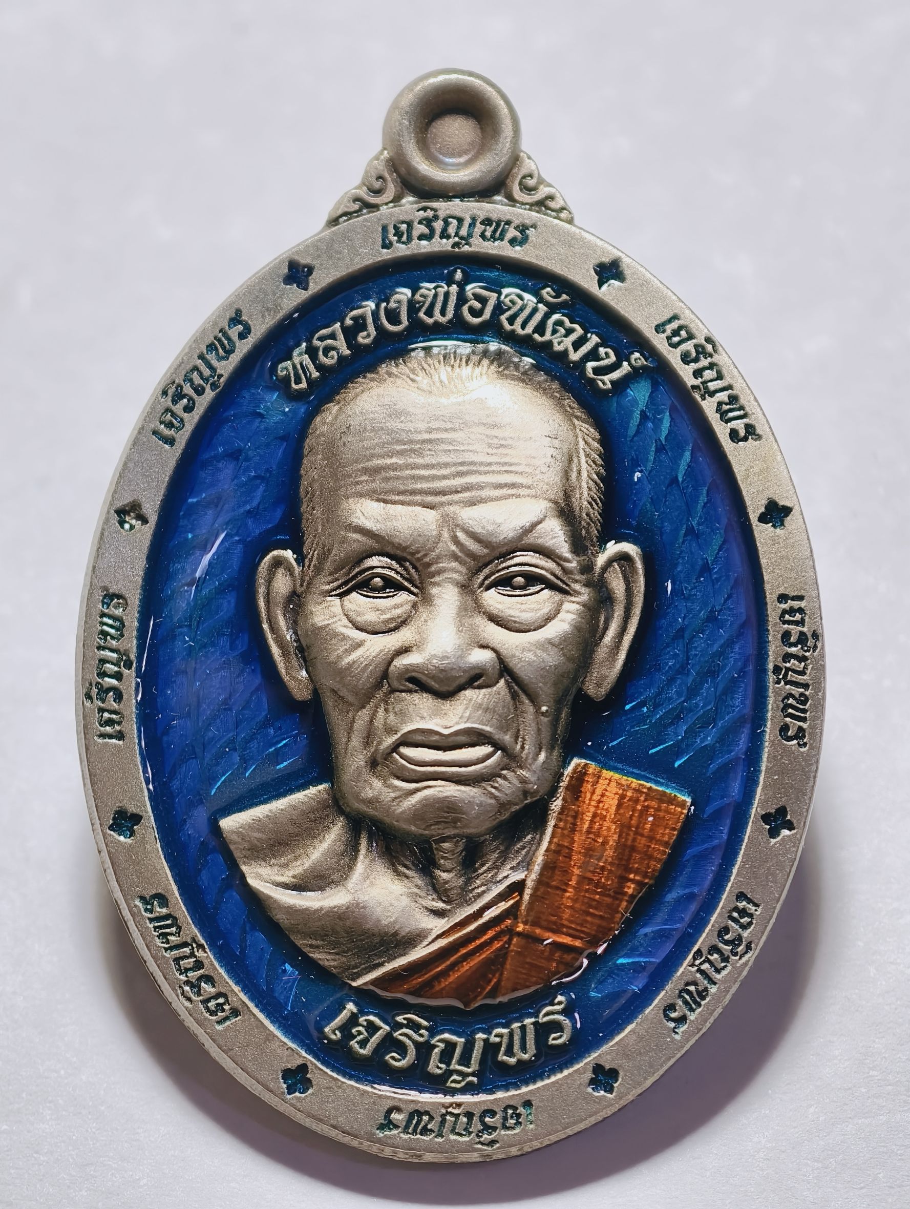 หลวงพ่อพัฒน์ วัดห้วยด้วน เหรียญเจริญพรล่าง 102ปี อัลปาก้า ลงยา AC2439