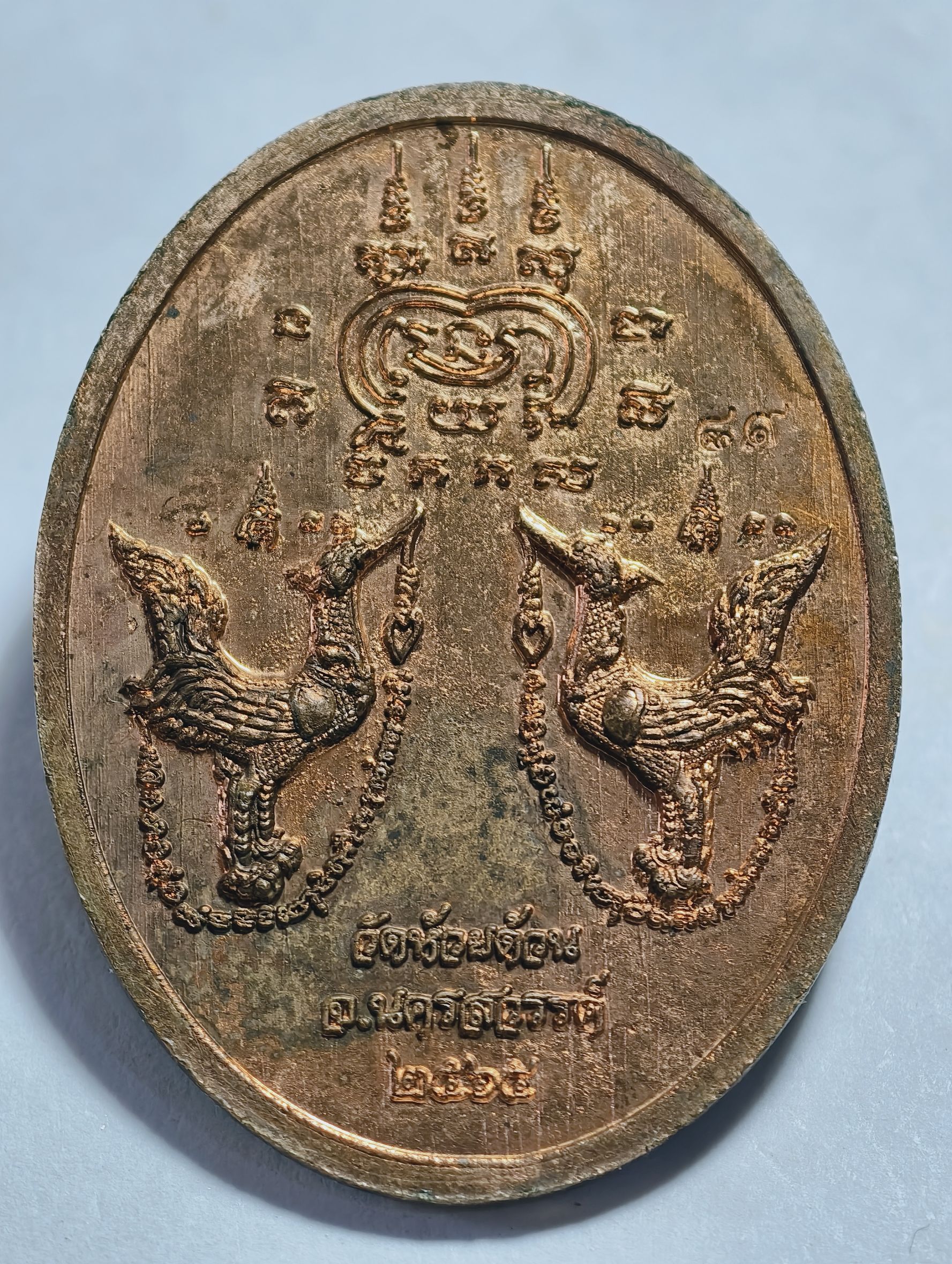 หลวงพ่อพัฒน์ วัดห้วยด้วน เหรียญมงคลร่ำรวย 100 ปี หลัง หงส์คู่ AC2392