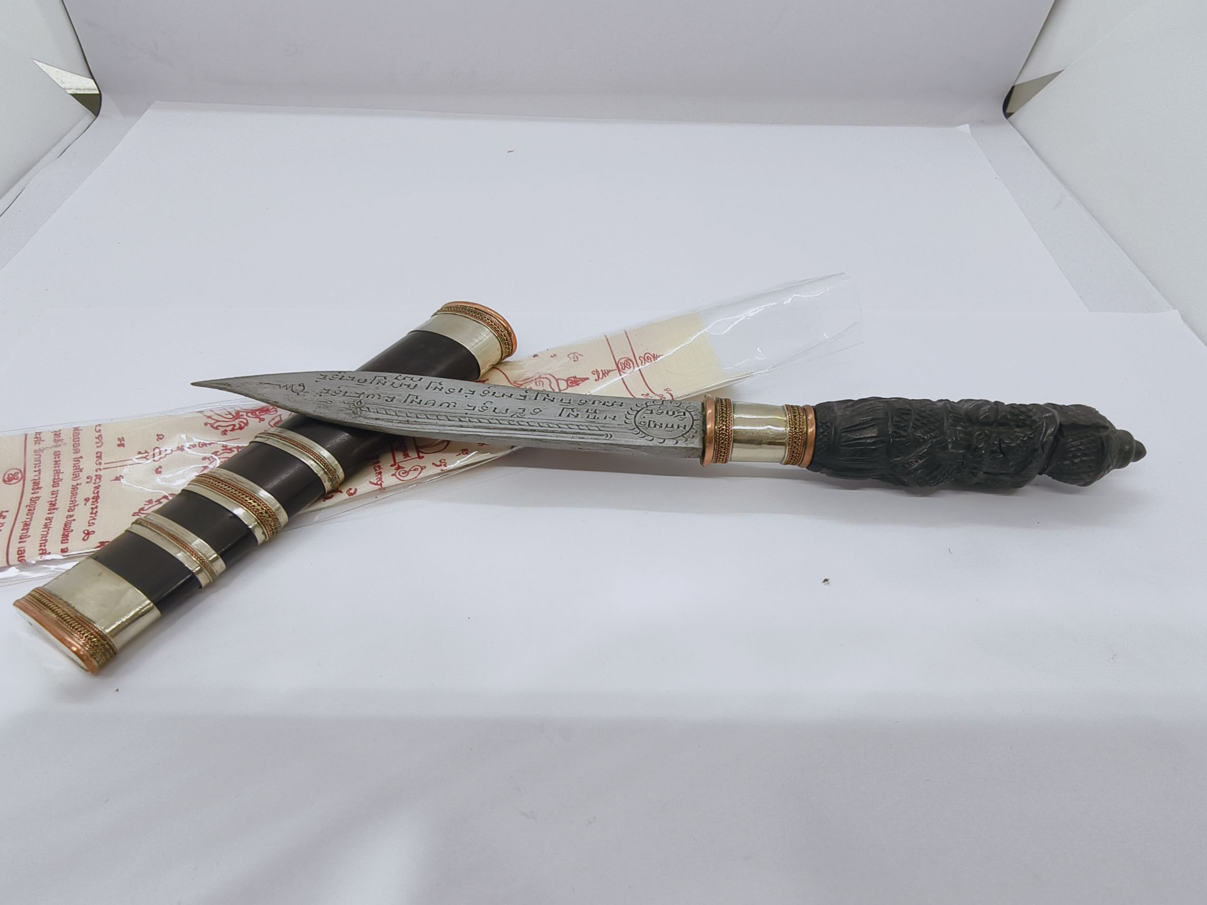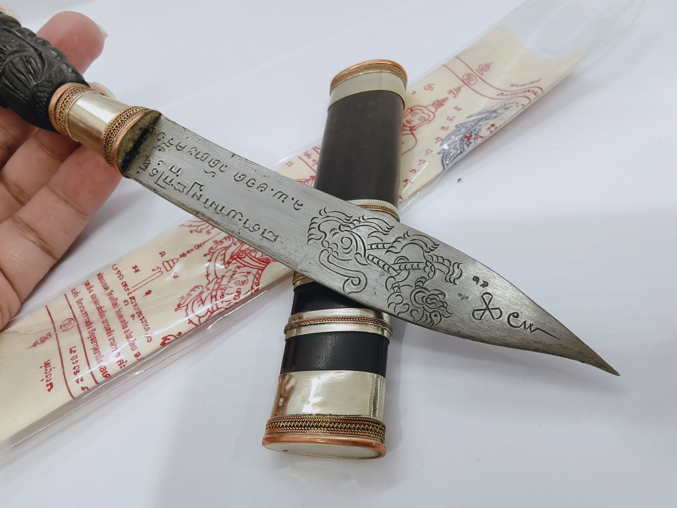 หลวงพ่อยอด โกสโล วัดตะคร้อ มีดหมอเทพศาสตรา รุ่น ชนะมาร เทพศาสตราวุธ รุ่นชนะมาร พระครูพิพิธธรรมาวิภัช (หลวงพ่อยอด โกสโล) วัดตะคร้อ จ.นครราชสีมา ไม้เสาโบสถ์เก่า ด้ามท้าวเวส สารพัดปราบ (KA2855)