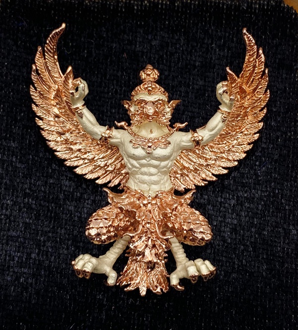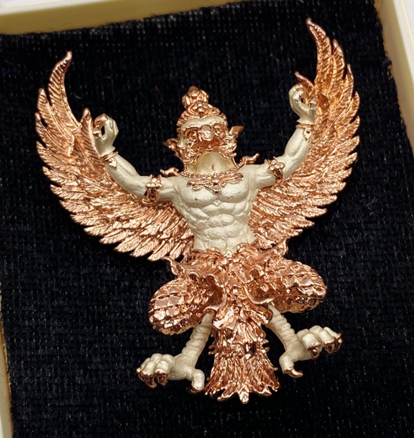 หลวงพ่อยอด วัดตะคร้อ มหาพญาครุฑ รุ่นยอดอริยทรัพย์ เนื้อสัมฤทธิ์ชุบ 2K(เงิน-พิงค์) KM014