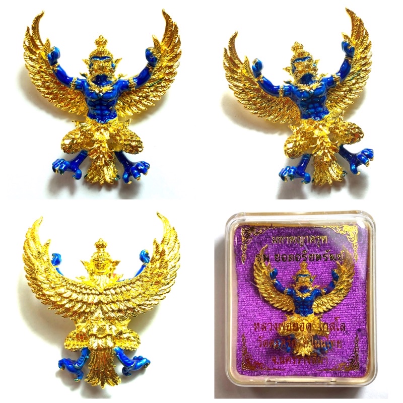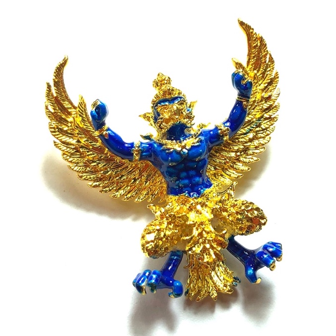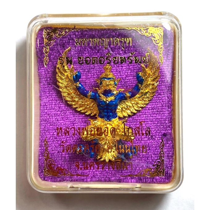 หลวงพ่อยอด วัดตะคร้อ มหาพญาครุฑ รุ่น ยอดอริยทรัพย์ เนื้อชุบทอง ลงยาน้ำเงิน KM414