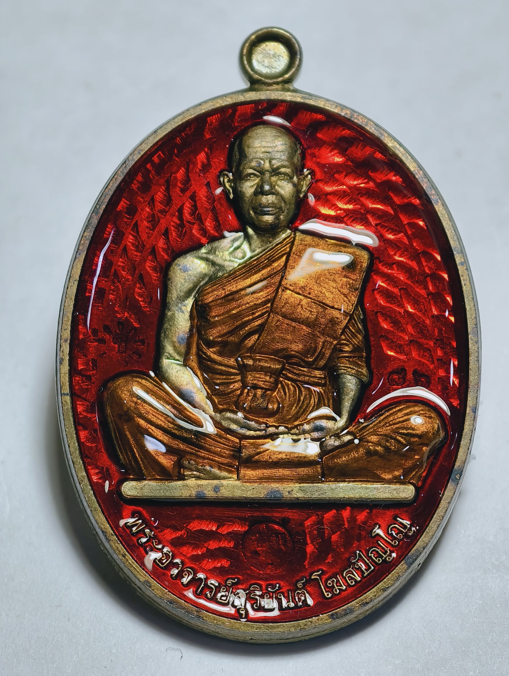 หลวงพ่อสุริยันห์ วัดป่าวังน้ำเย็น เหรียญสร้างบารมี ชนวนโบราณ ลงยา แดงยาจีวร เลข86 (AC3348)