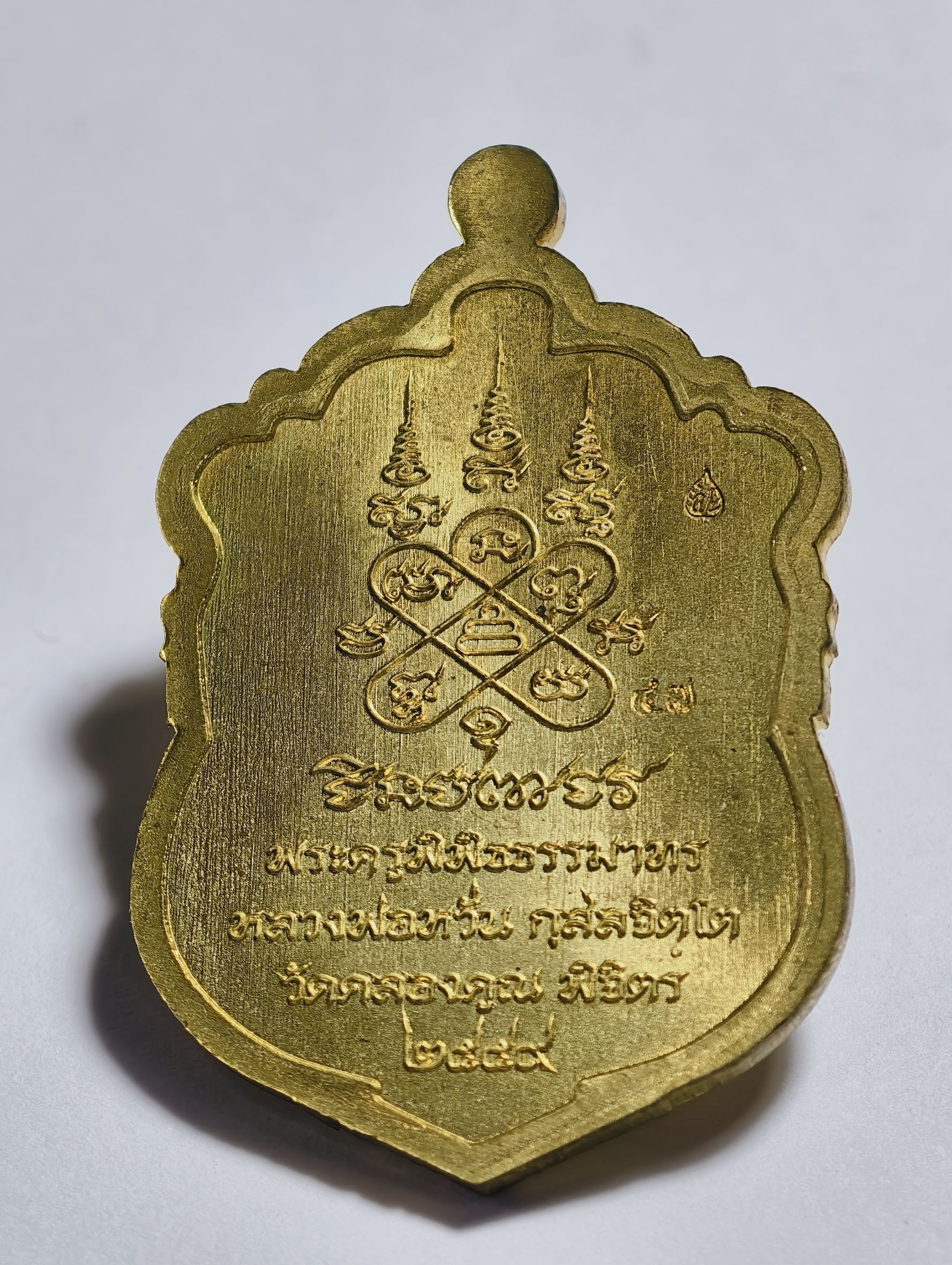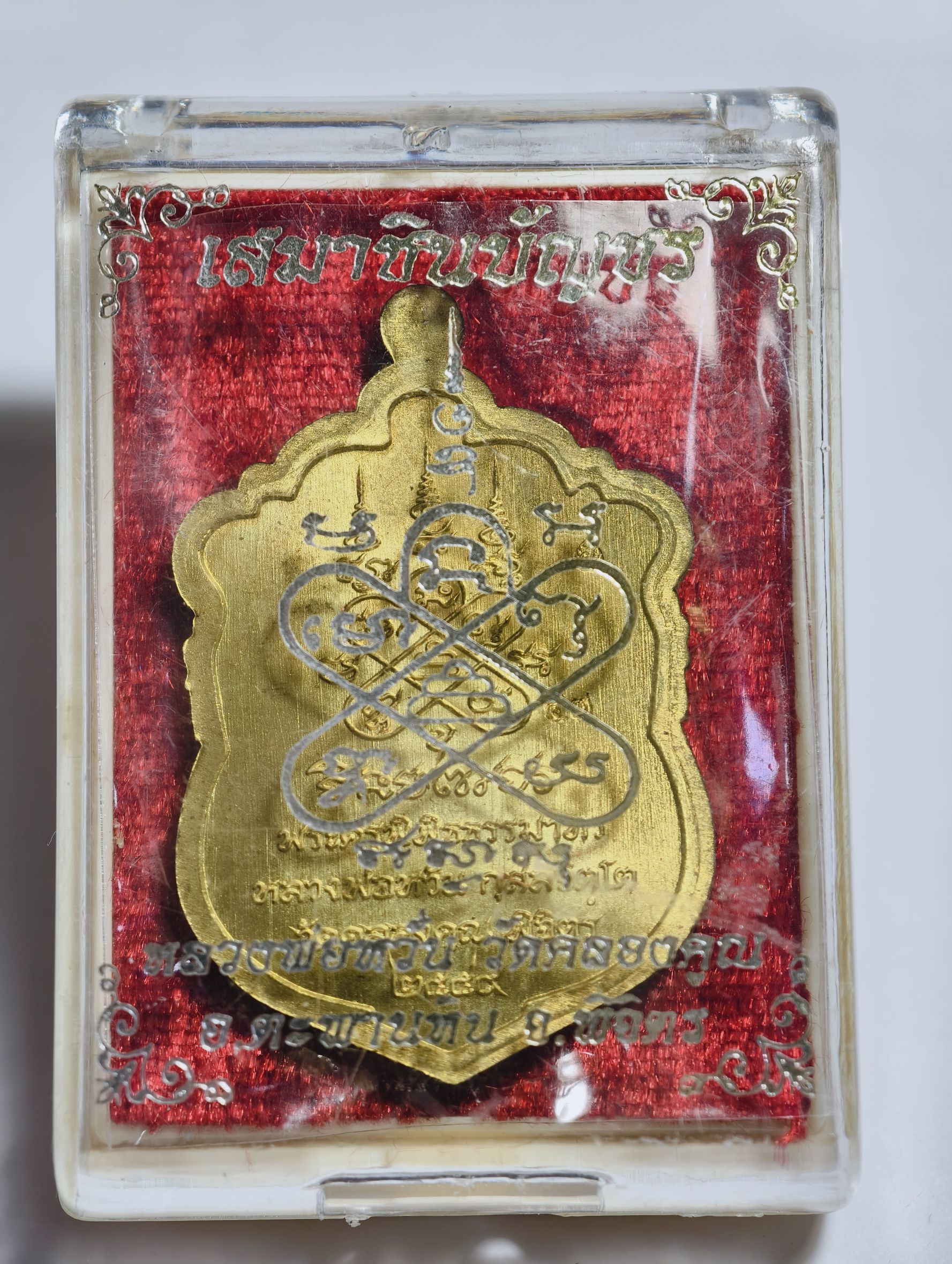 หลวงพ่อหวั่น วัดคลองคูณ เสมา ชินบัญชร ปลอกลูกปืน ลงยา (AC3278)