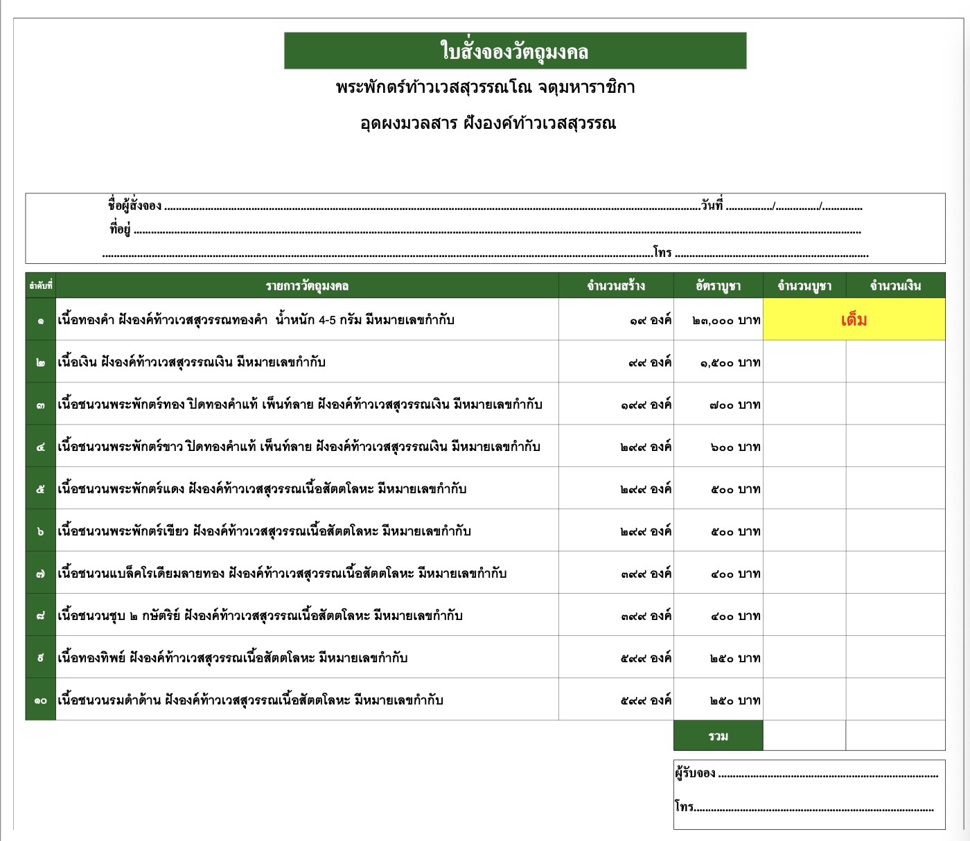 บรรจุผงพุทธคุณ ประทับหลังองค์ท้าวเวสสุวรรณ