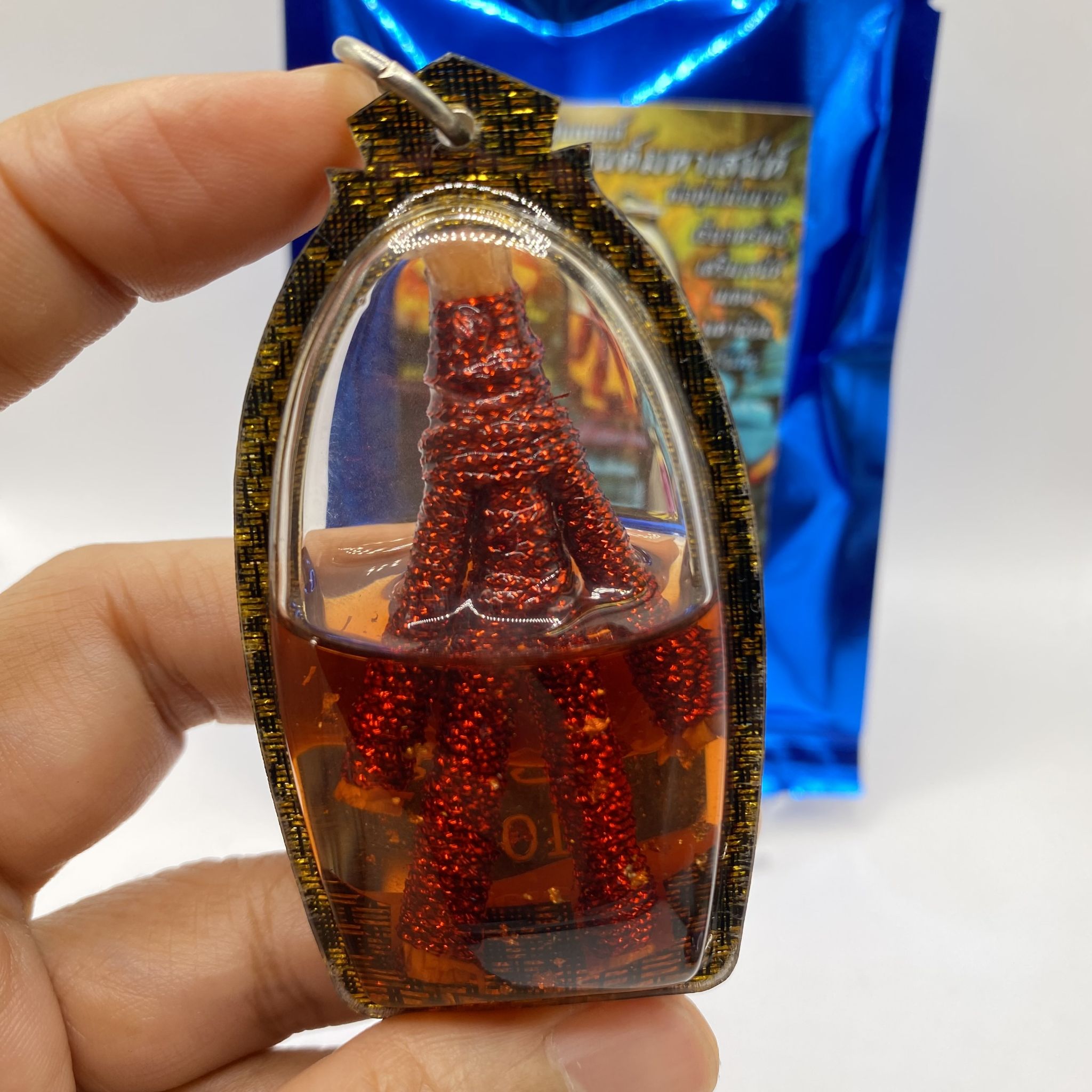 หลวงพ่อเมียน วัดจะเนียงวนาราม หุ่นพยนต์ มนต์มหาเสน่ห์ สีเแดง แช่น้ำมันนางหลง KM837