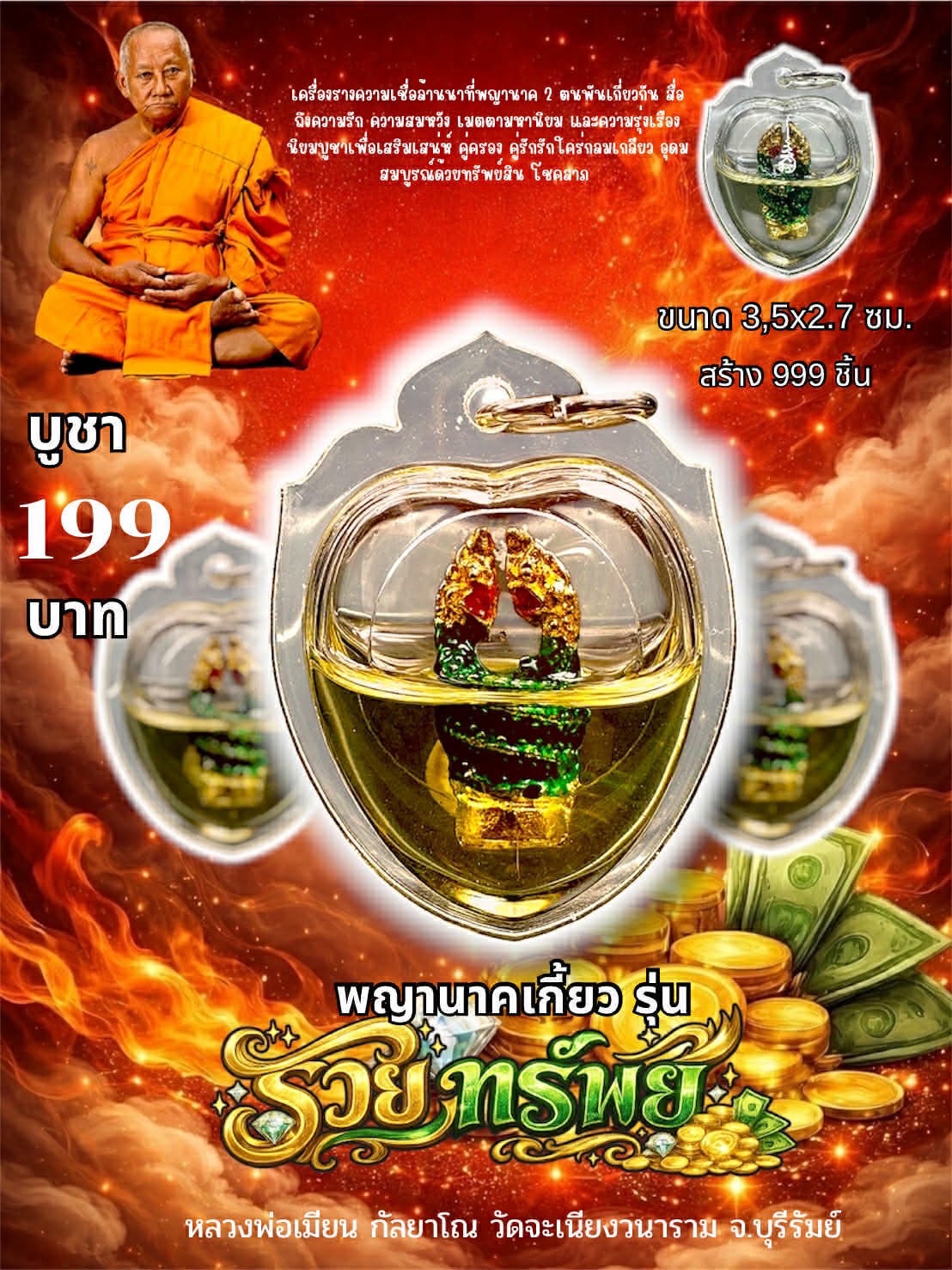 พญานาคเกี้ยว รุ่น รวยทรัพย์ (พร้อมเลี่ยมน้ำมันว่านเสน่ห์)