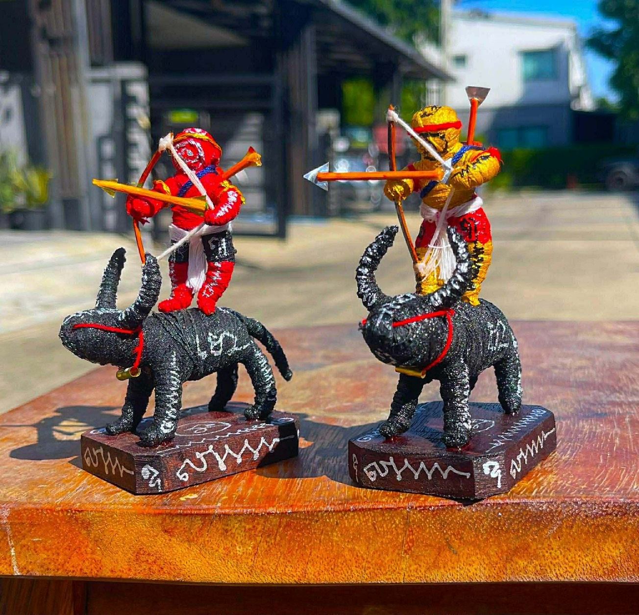 หุ่นพยนต์ถักเชือก รูปยืนขี่ควายยิงธนู รุ่น ปราบมาร