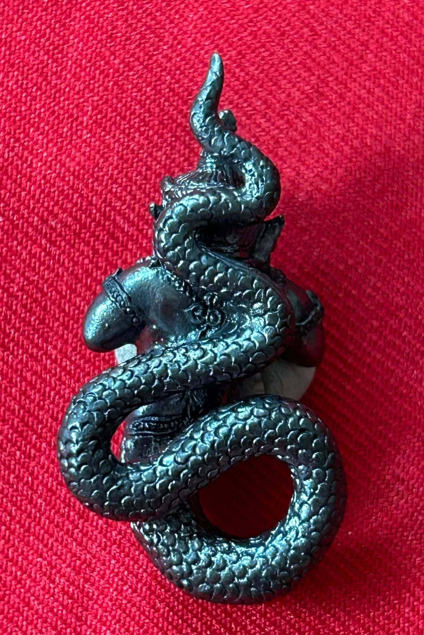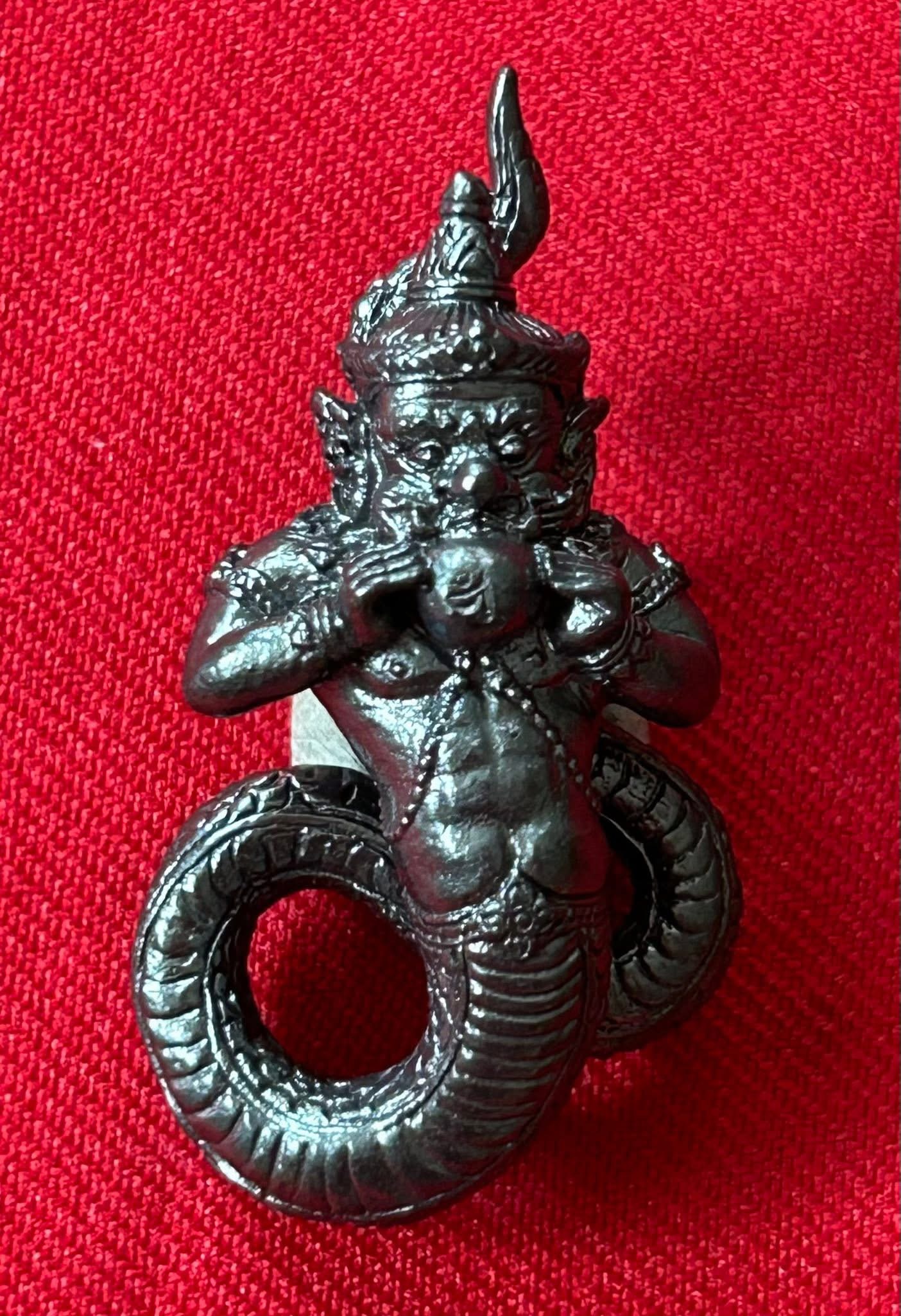 หลวงพ่อแช่ม วัดสำนักตะคร้อ เทพพญาราหู มหาบารมีเดชคุ้มภัย เนื้อทองเหลืองรมดำ (KU36)