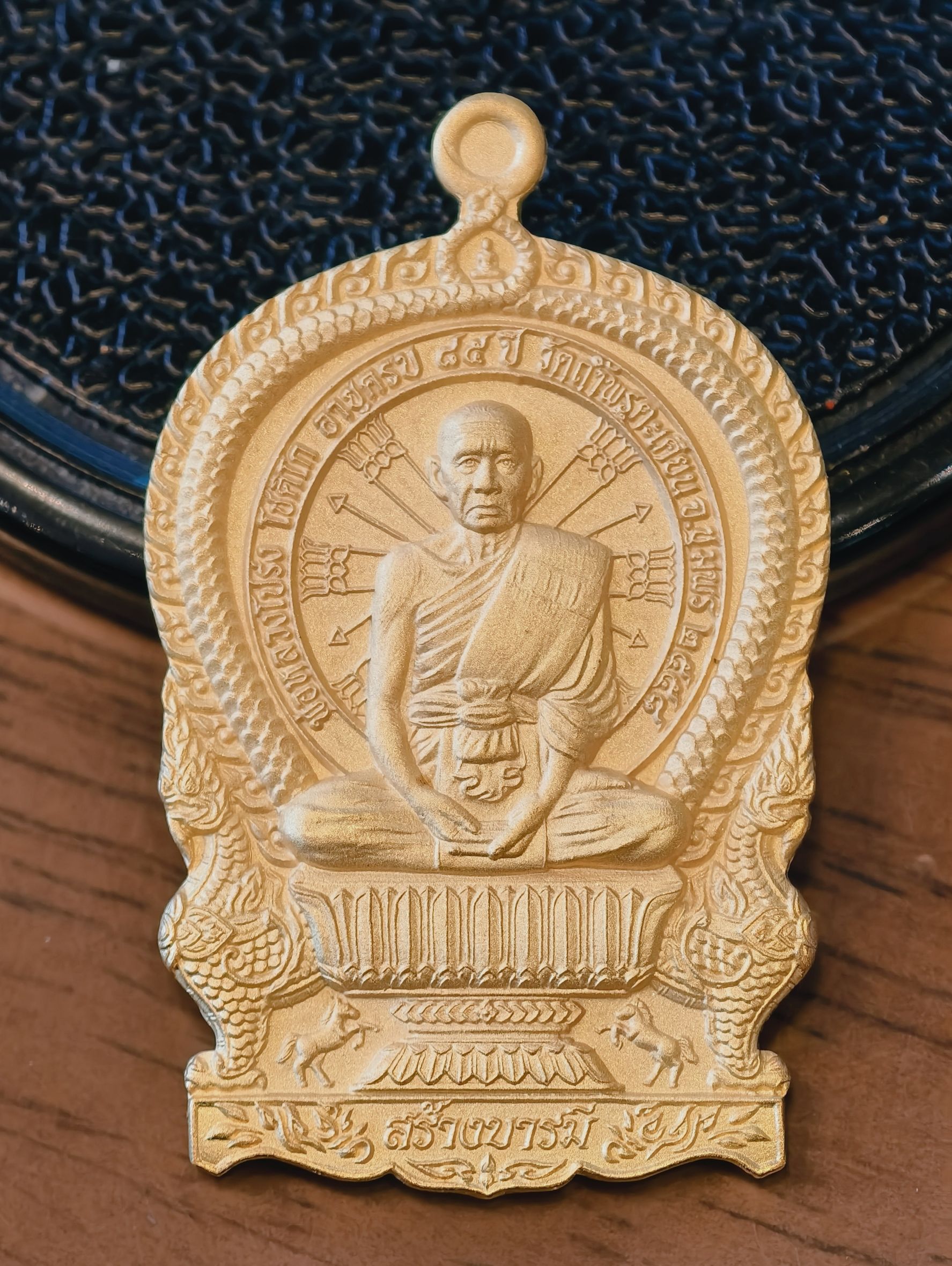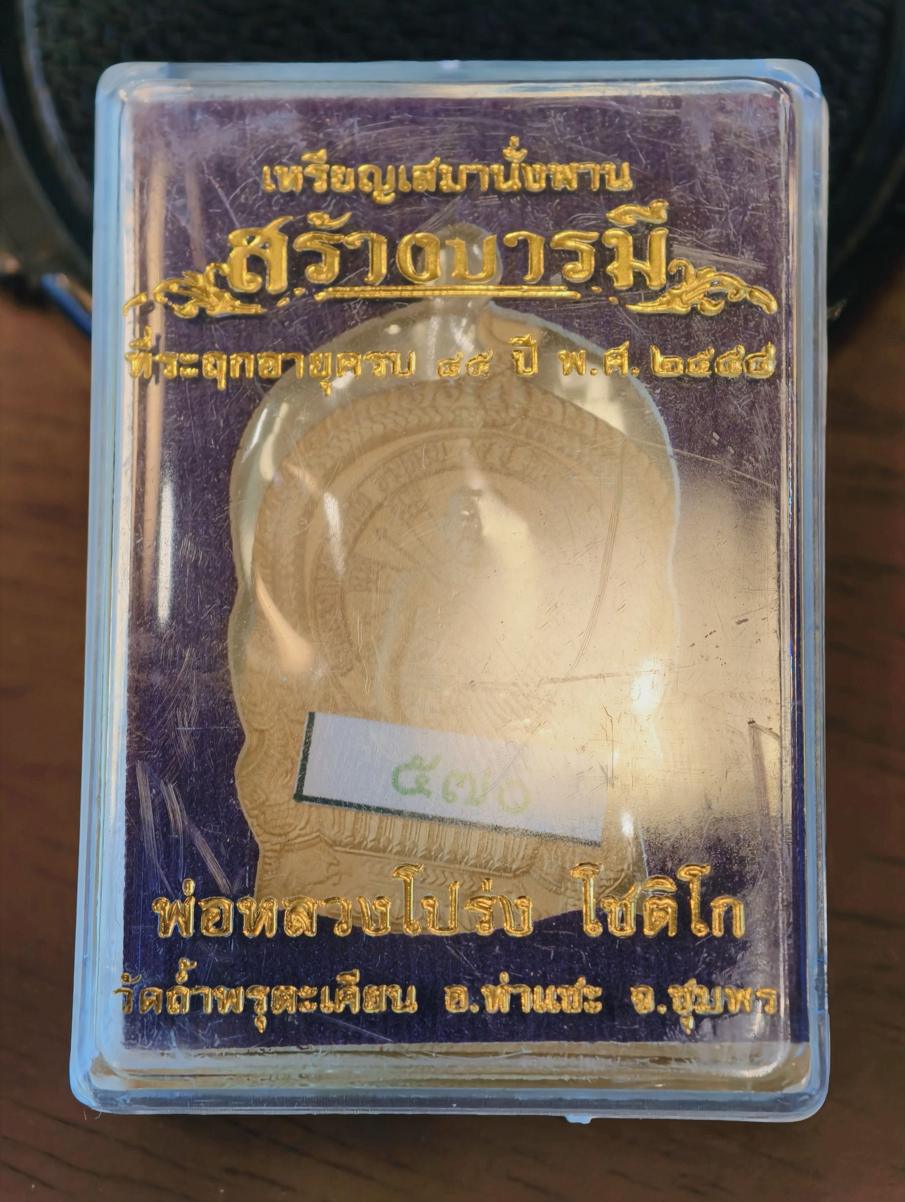 หลวงพ่อโปร่ง วัดถ้ำพรุตะเคียน เหรียญหลังเทวดา สร้างบารมี ชุบทอง KA3629