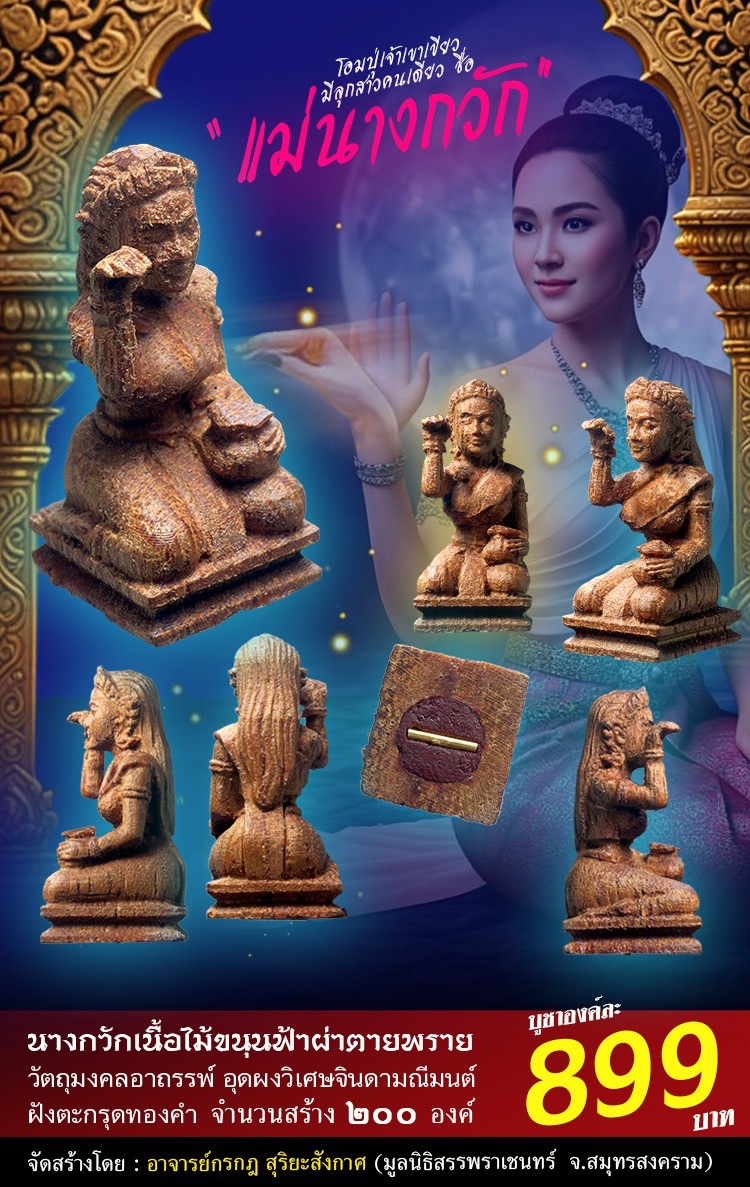 อธิษฐานโดยพระมหาเถราจารย์ ตลอด ๓ ปี และเข้าพิธีเรียกสูตร เรียกนาม ในการสร้างแม่นางกวัก ตามตำรับโบราณ จึงนำออกมาให้บูชา