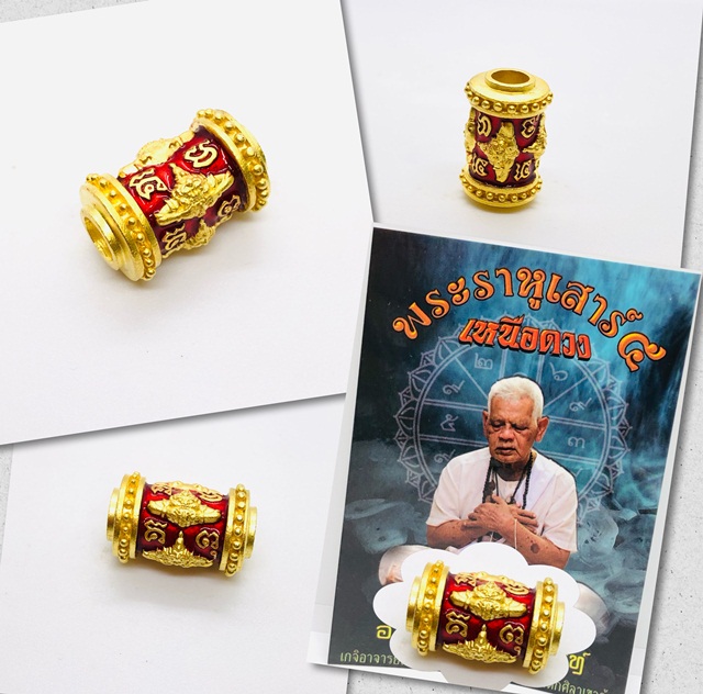 อาจารย์เปลี่ยน หัทยานนท์ ตะกรุดพระราหูเหนือดวง ฤกษ์เสาร์5 เนื้อสัมฤทธิ์ ชุบทอง-ลงยาแดง KM628