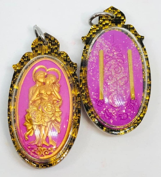 อิ่นคู่กระซิบรัก เนื้อผงว่านมหาเสน่ห์-สีม่วง (เลี่ยมกรอบอะคริลิค) พร้อมคาถา KM9874