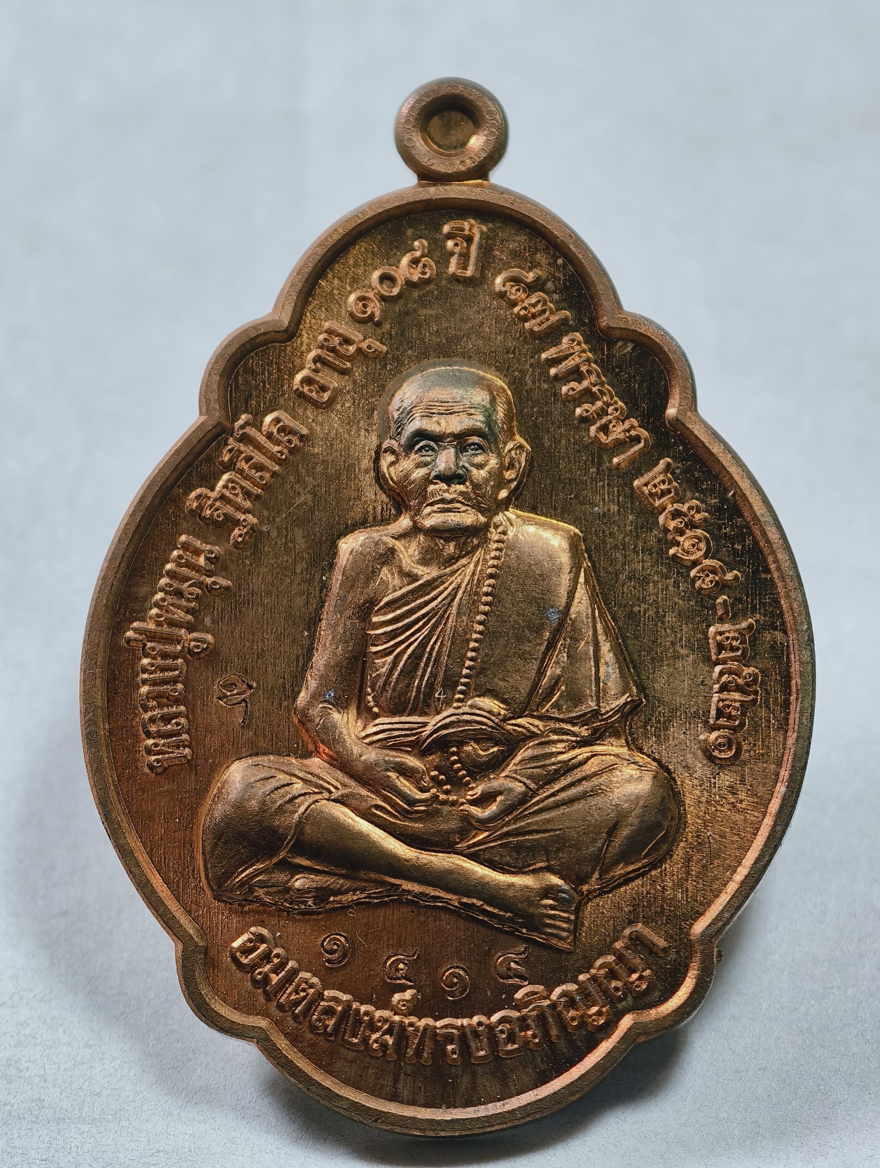 เหรียญดอกจิก หลวงปู่หมุน นั่งเต็มองค์ เนื้อทองแดง ผิวไฟ รุ่น เจ็ดตำนาน