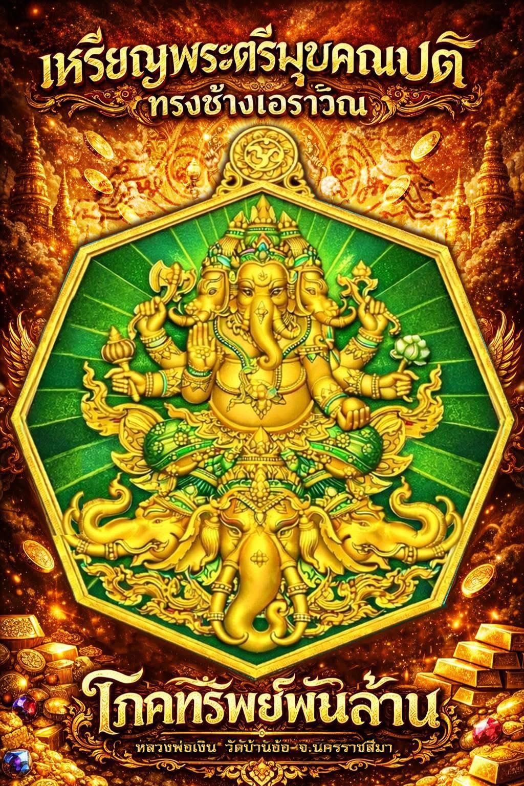 พระตรีมุขคณปติทรงช้างเอราวัณ โภคทรัพย์พันล้าน วัดบ้านอ้อ